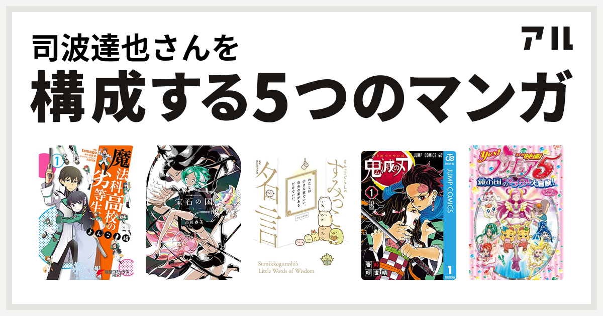 司波達也さんを構成するマンガは魔法科高校の劣等生 よんこま編 宝石の国 すみっコぐらしのすみっこ名言 鬼滅の刃 映画yes プリキュア5 鏡の国のミラクル大冒険 アニメコミック 私を構成する5つのマンガ アル
